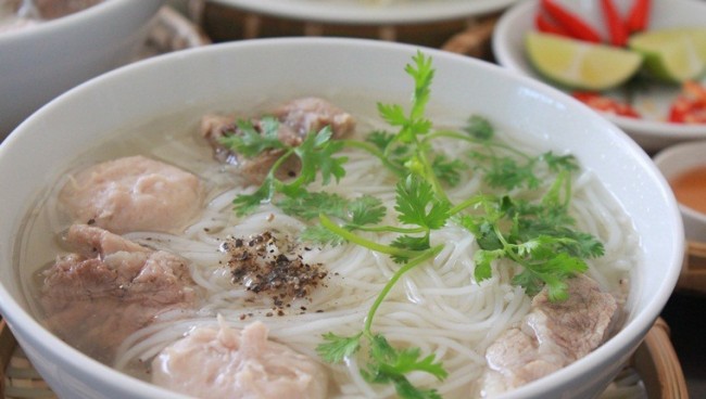– Bước 5: Bày bún ra tô, chan nước dùng lên, dọn cùng rau sống và chén mắm ớt.