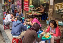Bánh xèo nằm trên phố Hàng Bồ là địa chỉ quen thuộc của dân phố cổ cũng như du khách nước ngoài. Vị trí không thể trung tâm hơn, khi chỉ cách bờ Hồ có vài bước chân nên không lạ khi những người check in ở quán đều là khách ngoại quốc. Họ thích thú khi được tận mắt chứng kiến người đầu bếp lớn tuổi ngồi giữa nhiều chảo bánh, nhanh tay đổ bột, tra nhân… cho ra lò những chiếc bánh nóng hổi.