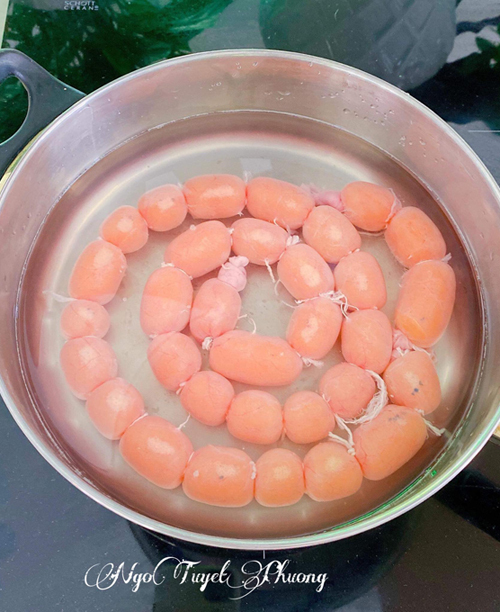 – Luộc xong lấy ra ngoài, rửa nhanh với nước. Để lòng nguội.