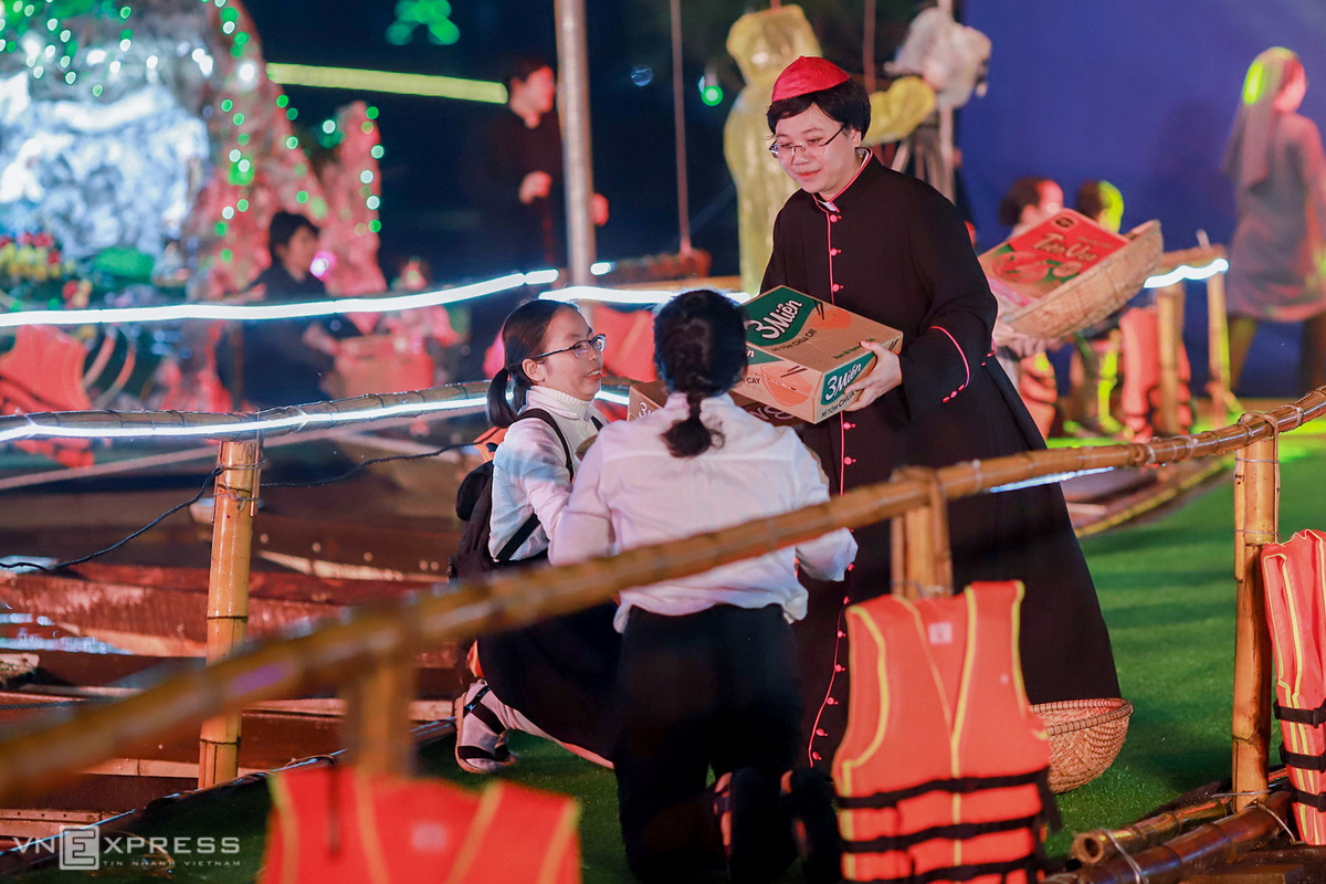Sau phần diễn nguyện diễn ra khoảng nửa tiếng, Đức Tổng Giám mục Giuse Nguyễn Chí Linh kiệu tượng Chúa hài đồng từ phía trong nhà thờ Cây Da ra hang đá được làm ngay trên những chiếc thuyền cạnh sân khấu nổi. Tất cả giáo dân cùng nhau dâng cao nến hướng theo Chúa hài đồng và hát vang bài ca Ngày ánh sáng: “Hôm nay muôn dân đã được thấy ánh sáng. Hôm nay Thiên Chúa đến viếng thăm dân Người… Người đã đến trần gian, sinh giữa chốn hang lừa khó khăn. Này chính Ðấng ngàn dân trông ngóng đến giải thoát chúng sinh mê lầm”.