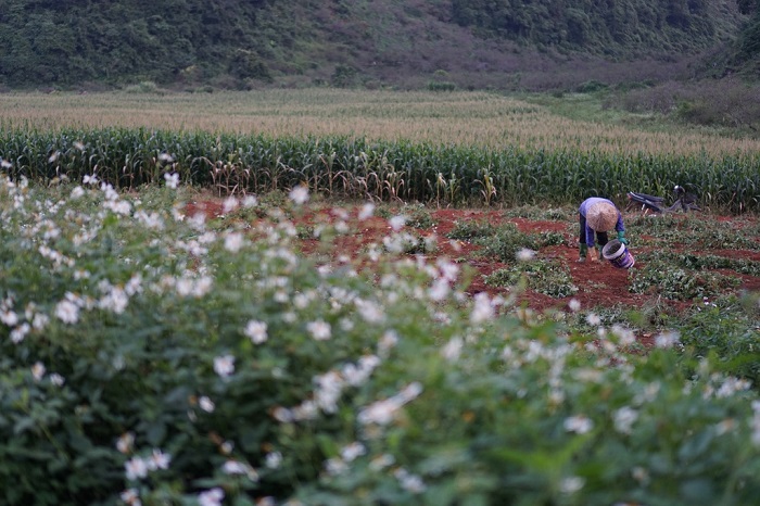 Mỗi mùa, bản sở hữu một nét đẹp riêng biệt. Nếu mùa xuân, sắc hồng trắng của đào mận tạo cho nơi này vẻ đẹp như bức tranh, mỗi dịp thu sang, sắc vàng rực của hoa dã quỳ phủ khắp cung đường, thì mùa đông, màu trắng bông cải nở rộ chính là điểm nhấn chinh phục du khách.