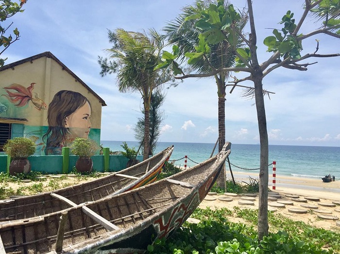 Lần đầu đến thăm làng chài này, chắc hẳn bạn sẽ mê mẩn ngay vẻ đẹp độc đáo và thú vị của hàng chục bức bích họa được vẽ trong làng. Những nếp nhà nhỏ bình thường bỗng trở nên có hồn hơn với đủ các tác phẩm chủ đề biền cả, đời sống con người hay cảnh đẹp đất nước. Đứng vào bất kỳ bức tường nào, du khách cũng có thể chụp được nhiều ảnh sống ảo chất.