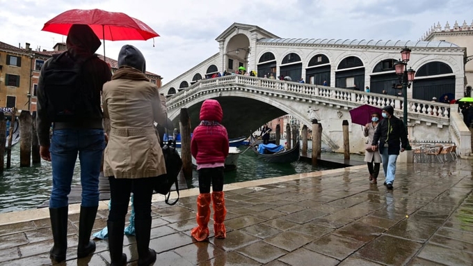 Du khách đứng đợi thủy triều ở trung tâm thành phố. Ảnh: AFP