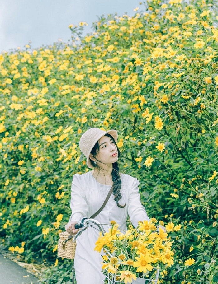 Những bụi dã quỳ trở thành background tuyệt đẹp cho các đôi trẻ chụp ảnh cưới. Ảnh: gody.vn