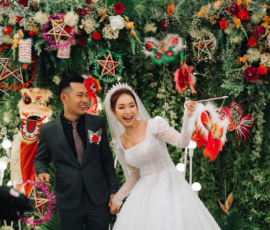 Trang điểm cô dâu tông hồng đơn sắc ngọt ngào