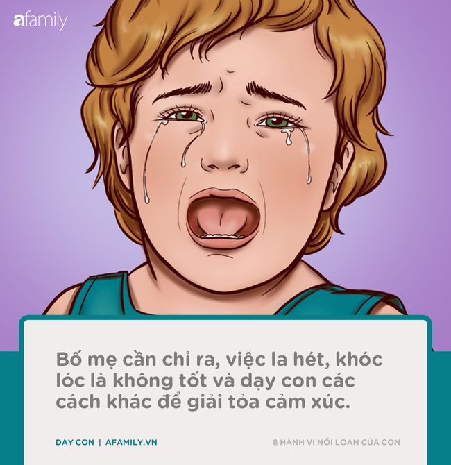 Nếu là lần đầu, bố mẹ có thể để mặc con bộc lộ cảm xúc. Nhưng những lần sau, bố mẹ cần chỉ ra việc la hét, khóc lóc là không tốt, và dạy con các cách khác để giải tỏa cảm xúc.