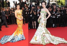 Hơn 8000 viên pha lê với hai màu trắng và đen được xếp dọc trên thân váy một cách tinh tế càng làm Lý Nhã Kỳ nổi bật giữa nền thảm đỏ của LHP Cannes