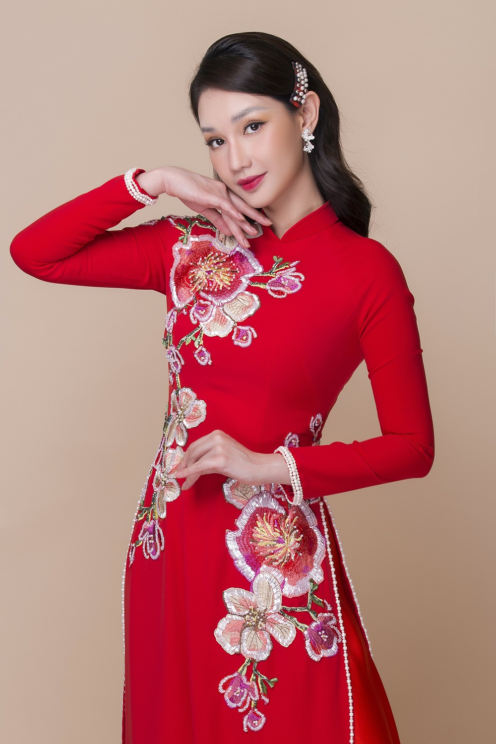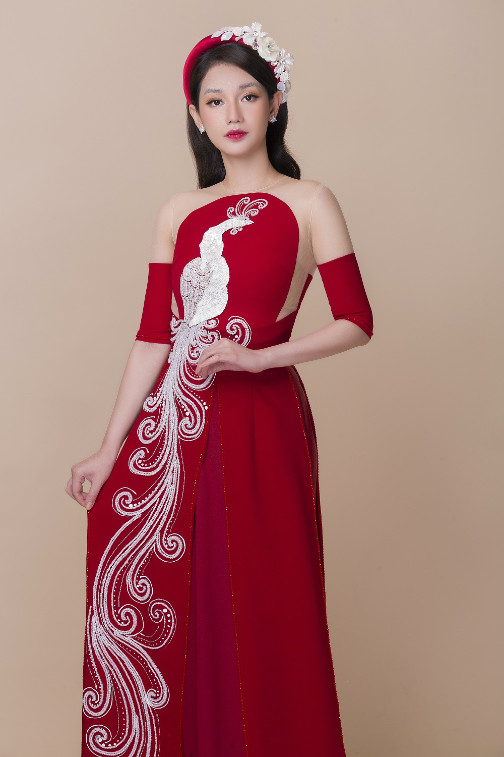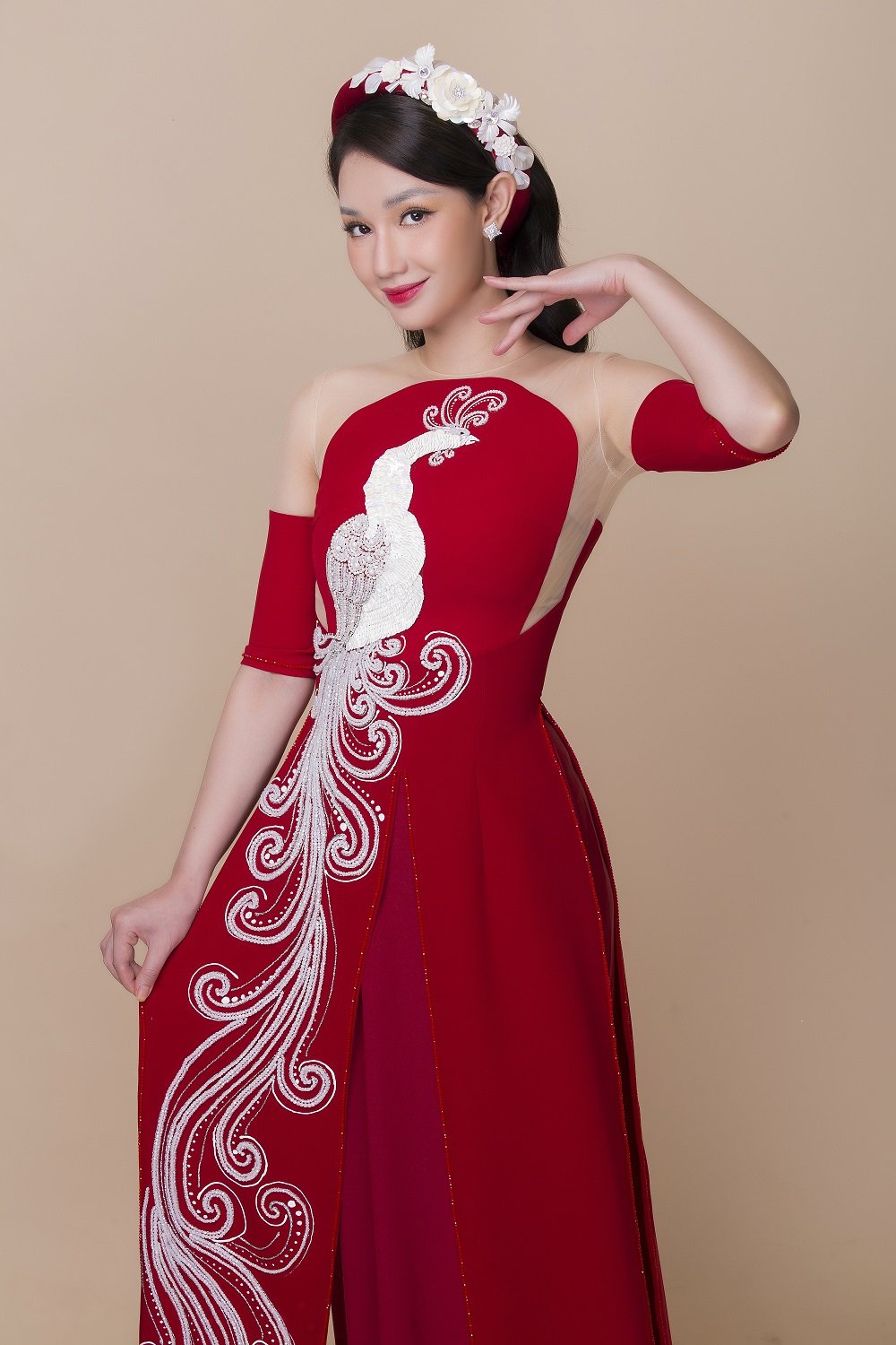 Sở hữu vóc dáng thon gọn, làn da trắng không tì vết, bà mẹ một con trở nên lung linh hơn khi diện những mẫu áo dài mang màu sắc đỏ, trắng và đen.