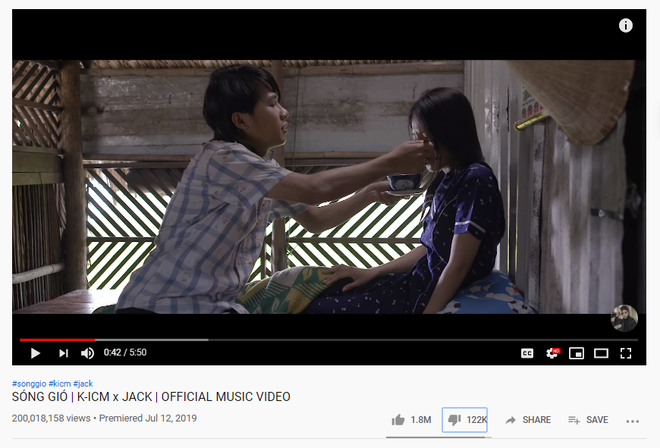 Mới đây, cộng đồng người hâm mộ K-ICM và JACK đón tin vui “kép” từ thần tượng. Cụ thể, MV Sóng Gió chính thức cán mốc 200 triệu lượt xem. Điều đáng nói rằng bộ đôi producer – ca/nhạc sĩ chỉ mất đúng 102 ngày để sản phẩm âm nhạc này đạt số view khổng lồ. Đưa Sóng Gió trở thành MV Vpop đạt 200 triệu lượt xem trên Youtube nhanh nhất trong lịch sử Vpop. Về thứ hai cũng lại là một “bom tấn” khác từ K-ICM và JACK: Bạc Phận – MV cần 132 ngày để cán mốc 200 triệu lượt xem.