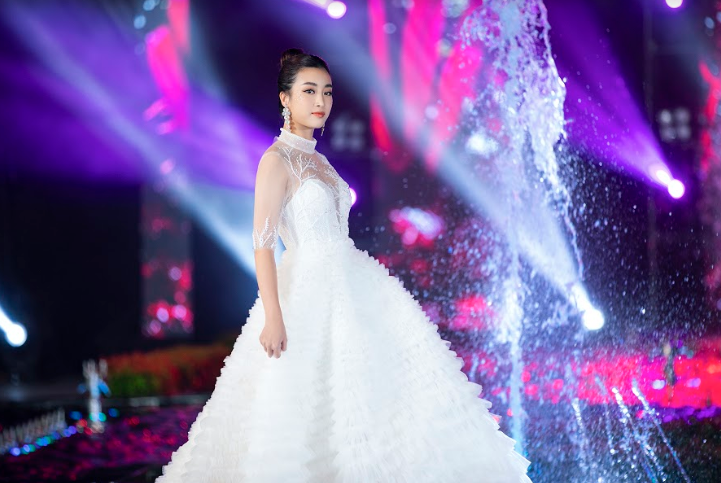 Đảm nhận vai trò vedette trong BST lần này, Hoa hậu Tiểu Vy khiến khán giả thổn thức khi hoá thân thành nữ thần lộng lẫy.