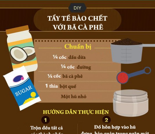 Tái sử dụng bã cà phê để tẩy tế bào chết cho mặt, giúp tăng cường lưu thông máu và làm sáng da.