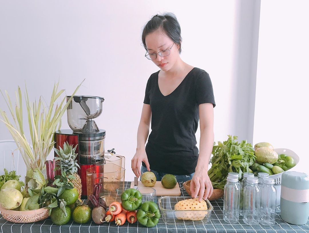 Sau khi cải thiện vóc dáng thành công, giảm tỷ lệ mỡ cơ thể từ 25% xuống còn 21%, Giang Hà, 29 tuổi, đúc kết được nhiều kinh nghiệm trong việc ăn uống, chăm sóc bản thân. Ngoài chế độ ăn nhiều rau xanh, thay thế tinh bột trắng bằng gạo lứt, khoai lang… cô nàng cũng chăm chỉ bổ sung các loại nước ép, sinh tố nhằm tăng cường vitamin cho cơ thể.