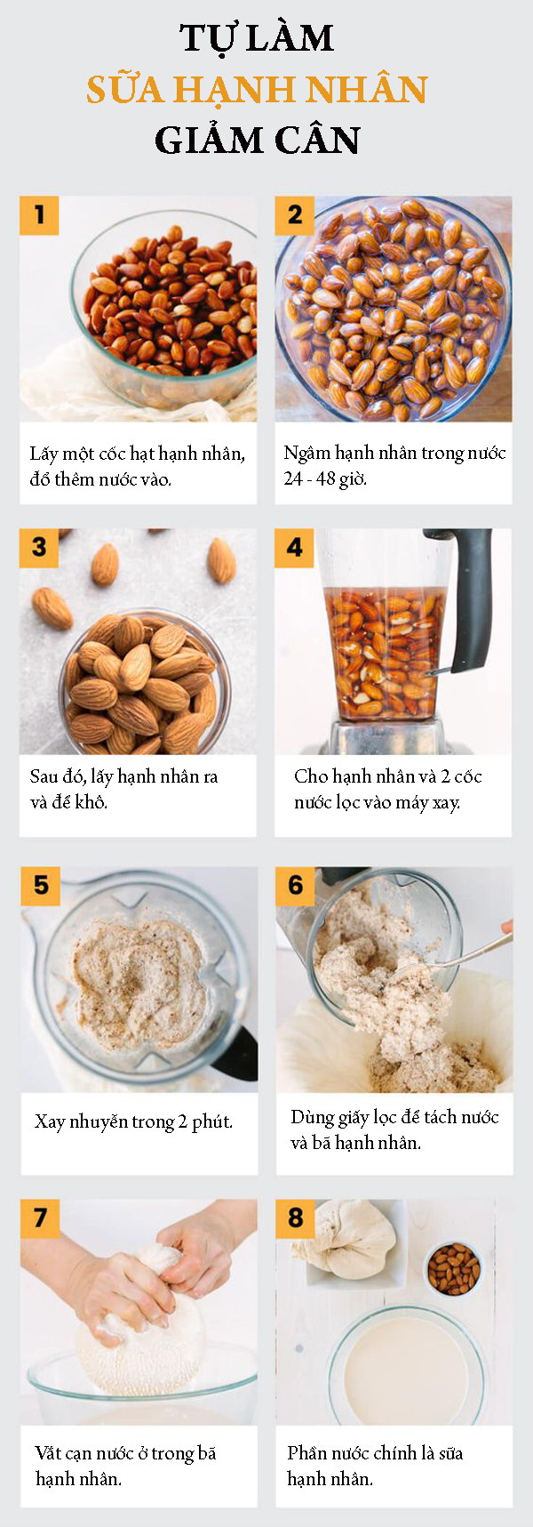 Sữa hạnh nhân giàu chất xơ và protein, giúp tăng cảm giác no cùng hàm lượng chất béo lành mạnh cao, hỗ trợ đốt cháy mỡ thừa hiệu quả.