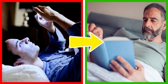 Thay vì cầm các thiết bị điện tử thì bạn nên đọc sách hoặc nghe một vài bản nhạc thư giãn.