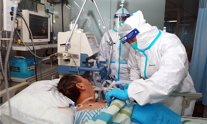 Một bệnh nhân Covid-19 nặng được đặt ống dẫn khí tại một bệnh viện ở Vũ Hán. Ảnh: Cnnews.