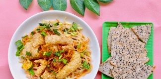 Bì heo giòn tan ăn kèm gỏi đu đủ chua ngọt, vị mắm ruốc đặc trưng hấp dẫn, dùng làm món ăn chơi hoặc...