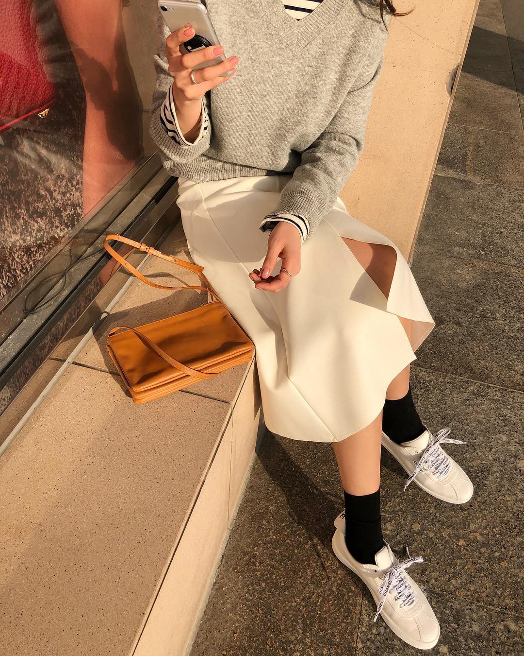 Với những nàng không thể sống thiếu váy vóc, kể cả trong mùa lạnh thì bộ đôi áo len + chân váy chính là gợi ý không thể hoàn hảo hơn. Vừa khéo, công thức này cũng được các quý cô sành mặc rất mực ưu ái mà thường mix&match khá linh hoạt áo len với muôn kiểu chân váy như: xếp li nhỏ, chân váy dạ, chân váy nhung, lụa… Sau cùng, tô điểm cho set đồ đôi boots thấp cổ, khoác ngoài áo dạ hay áo blazer là đẹp chẳng chê được chỗ nào.