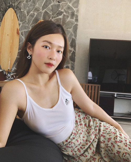 Nếu sở hữu vòng eo săn chắc thì áo hai dây dáng thể thao như Khả Ngân là lựa chọn hoàn hảo.