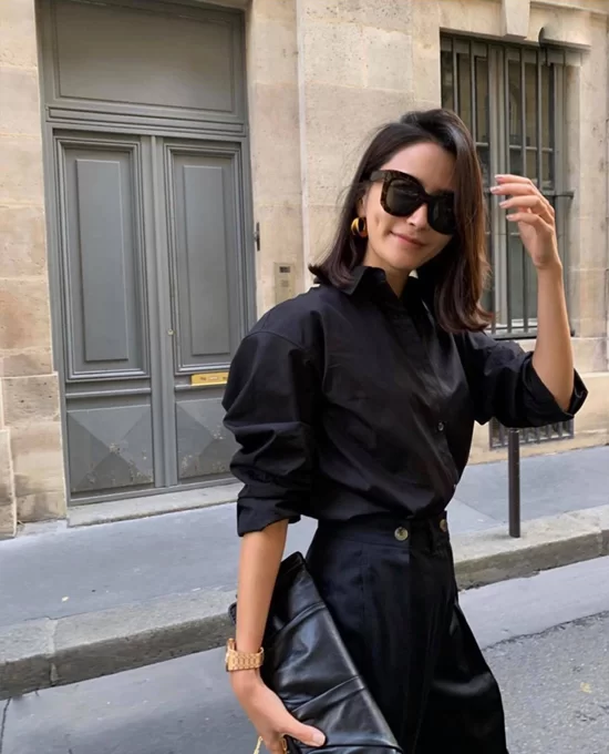 Chỉ cần một chiếc sơ mi đen có đường may chỉn chu, quần ống lửng phù hợp vóc dáng là các nàng có thể tự tin đến văn phòng hay đi dạo phố.