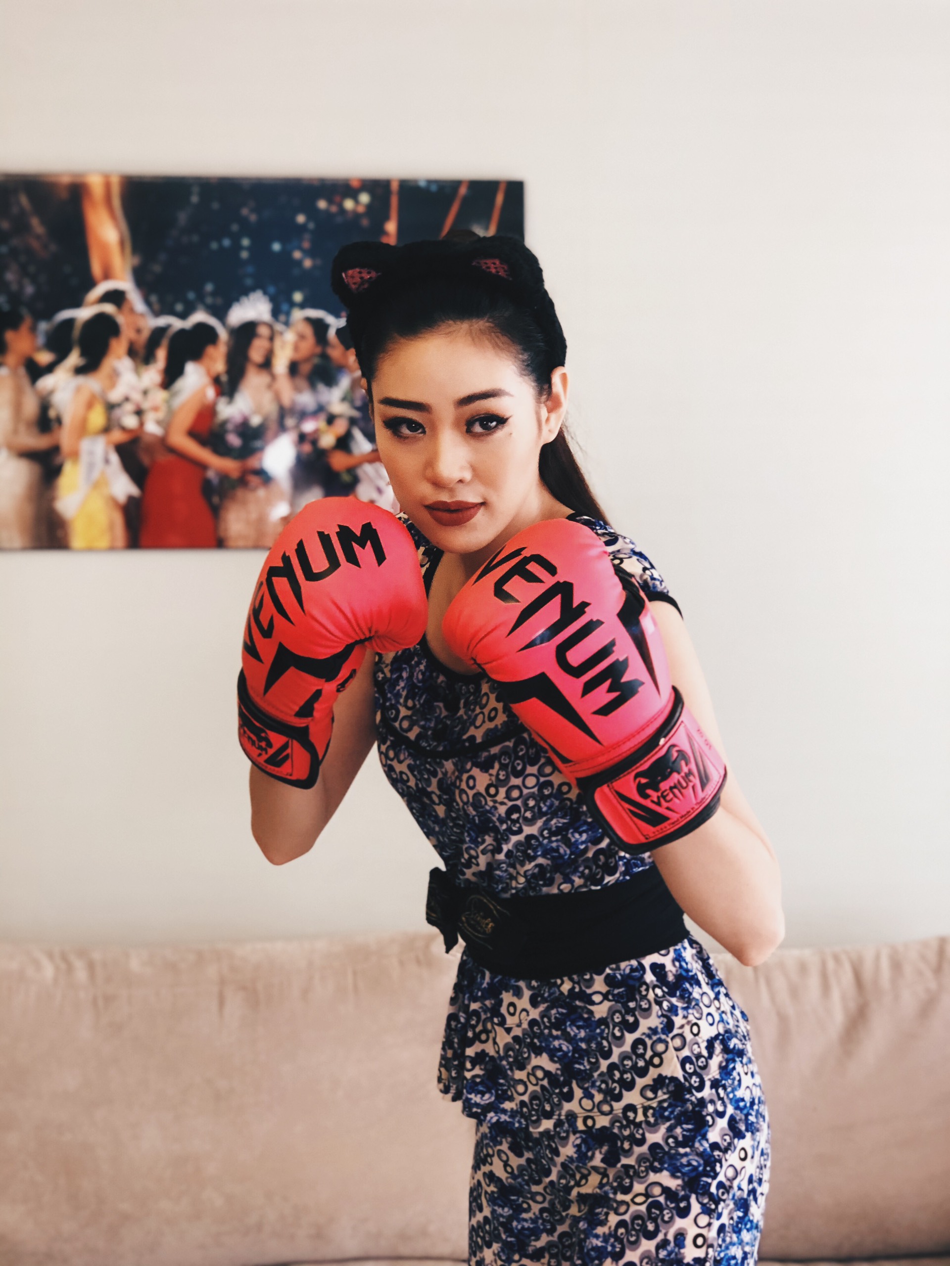 Hoa hậu Khánh Vân diện đồ bộ tập boxing