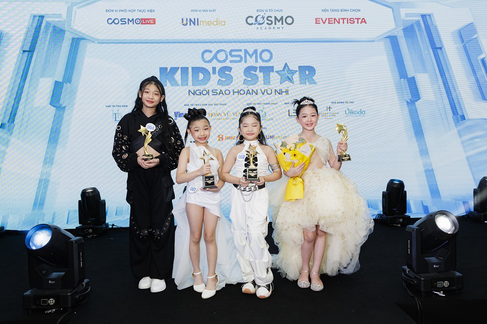 Ngày 10/8 vừa qua, chung kết “Cosmo Kid’s Star – Ngôi Sao Hoàn Vũ Nhí” đã diễn ra bùng nổ và tìm ra những chủ nhân xứng đáng cho ngôi vị cao nhất. Hai Quán quân lần lượt gọi tên Vũ Nhật Linh Nhi (hạng mục Model), Nguyễn Phan Bảo Ngọc (hạng mục Dance) cùng hai Á quân là Celine Nguyễn (hạng mục Model), Bùi Lê Tuyết Hân (hạng mục Dance).