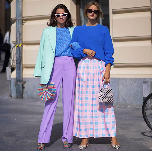 Trang phục bắt mắt với những tông màu như hồng, xanh, cam tiếp tục được phái đẹp ưa chuộng trong xu hướng xuân 2020.