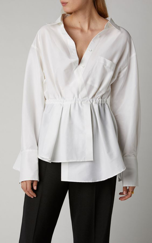 Đường chun eo giúp các mẫu sơ mi trắng, blouse trắng trở nên mới mẻ hơn và khiến trang phục văn phòng trở nên đa dạng.