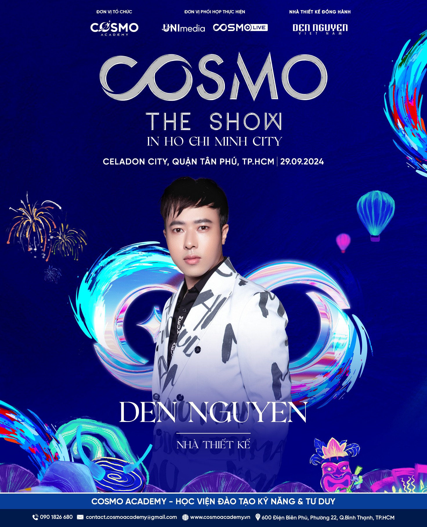 NTK Den Nguyen sẽ cùng với NTK Ivan Trần là một trong hai cái tên trình diễn bộ sưu tập mới trong đêm đại tiệc thời trang Cosmo The Show tại chặng TP. HCM. Chắc chắn rằng, với sự chuẩn bị chỉn chu và tâm huyết đặt ra, NTK Den Nguyen sẽ chinh phục trái tim khán giả với những tuyệt tác thời trang hoàn mỹ.