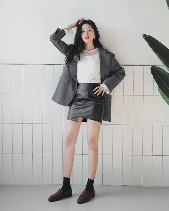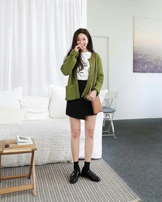 Để set đồ áo len dáng rộng, chân váy siêu ngắn thêm phần hoàn hảo, các bạn gái nên chọn thêm các kiểu bốt cổ thấp, bốt da để mix đồ.