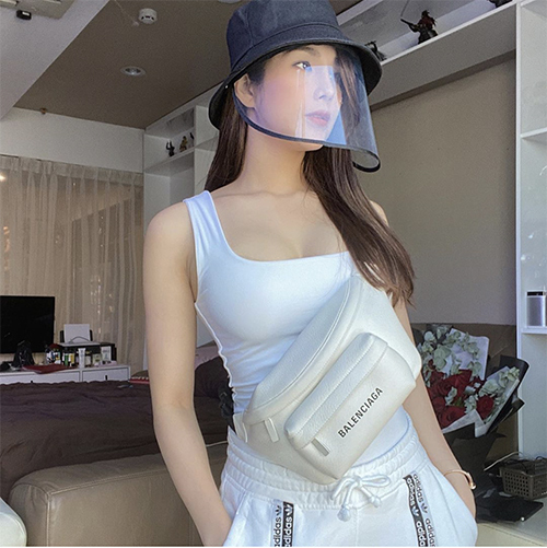 Street style thời Covid-19 của Trà Ngọc Hằng cũng khác hơn với ngày thường bởi sự xuất hiện của món phụ kiện nhựa trong.