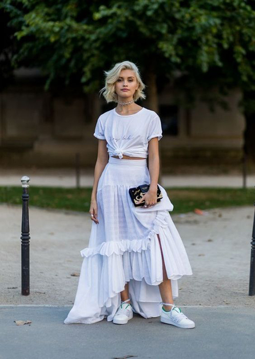 Sơ mi và chân váy là công thức phối đồ quen thuộc của phái đẹp. Nó luôn được áp dụng bởi tính tiện lợi và không gây khó khăn cho người mặc trong việc phối đồ.Để mang tới làn gió tươi mới và khiến tủ đồ của chị em thêm phong phú, các nhà mốt luôn khéo léo thể hiện sự biến tấu trên các kiểu váy midi.Thay vì váy xoè lấy cảm hứng từ phong cách cổ điển, chân váy midi mùa mới có nhiều style lạ mắt hơn. Đơn cử như các kiểu váy vạt xéo, váy xếp nếp…Cách sử dụng các loại chất liệu như linen, bố, kaki cũng khiến các kiểu chân váy midi trở nên cuốn hút. Trang phục này có thể mix cùng sơ mi, áo thun và các kiểu áo sát nách cho set đồ dạo phố.Chân váy bút chì cũng được nhiều thương hiệu may mặc chăm chút về kiểu dáng mới. Thay vì kiểu ôm sát vòng 3 như trước đây là các dáng váy suông mang tính ứng dụng cao.Chân váy bút chì được cắt may trên các chất liệu vải cotton, hoạ tiết ca rô mang lại phong cách trẻ trung cho phái đẹp.Set đồ mùa hè dành cho các nàng mê chân váy bút chì với cách mix đồ hoạ tiết với áo thun kiểu dáng đơn giản, giày rọ và túi cói.Set đồ ‘2 trong 1′ với áo thun đen, chân váy xẻ, gìày đế bệt và túi ‘cặp nách’ có thể sử dụng đến văn phòng hoặc chưng diện khi dạo phố.Ngoài hai kiểu chân váy thông dụng là midi và bút chì là sự xuất hiện của trang phục mang hơi hướng phong cách bohemian.Chân váy vạt quấn đi kèm bèo nhún và thể hiện sự tự do phóng khoáng được dự báo là trang phục sẽ tạo nên ‘cơn sốt’ ở mùa thời trang mới.Chân váy bohemian dành cho những cô nàng cá tính, thích mix đồ phá cách và muốn hình ảnh của mình nổi bật trên phố.