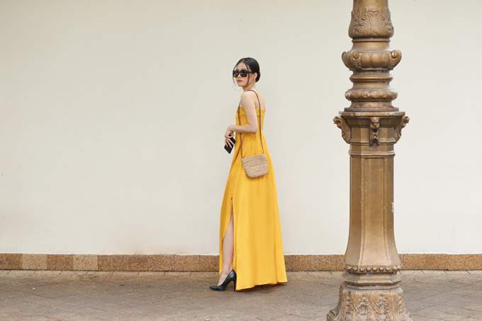 Bên cạnh việc lăng xê loạt váy, áo gam trắng thanh nhã, váy vàng mù tạt hợp xu hướng thu đông cũng được người đẹp sử dụng để mix đồ dạo phố.