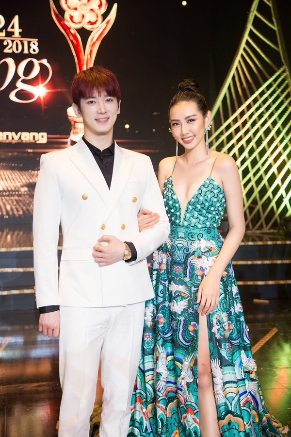 Trong trang phục của Lê Thanh Hoà, Hoa hậu Tiểu Vy thu hút mọi với đầm dạ hội lấp lánh, tựa nàng công chúa Tuyết giữa những ngày đầu xuân mới. Sánh vai bên đương kim Hoa hậu là hai nàng Á hậu Phương Nga và Thuý An. Nếu Phương Nga cá tính trong thiết kế cắt cúp ấn tượng trên nền vải metallic thời thượng của Chung Thanh Phong với vẻ đẹp lanh lợi vốn có, thì Thuý An lại ngọt ngào và quyến rũ sau thời gian dưỡng bệnh. Nàng hoa hậu Nhân Ái Thuỳ Tiên cùng không kém phần khi chọn một thiết kế độc đáo với kiểu tóc ấn tượng cùng phụ kiện ton-sur-ton với hoạ tiết in trên đầm.